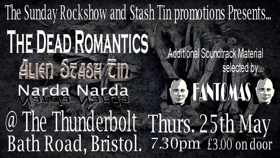 Alien Stash Tin - Bristol space rockers who are now in their fifteenth year. With two studio albums and a truck load of singles and ep's under their belts (with a third album in the pipeline); They have a history of gigs all over the UK that has taken them to festivals like Guilfest, The Bulldog Bash and Solarsphere and seen them share stages with the likes of Hawklords, Bad Manners, Savage Messiah, Bleak and Dumpy's Rusty Nuts. With a stage show that includes lasers and lots of audience interaction they never fail to entertain.